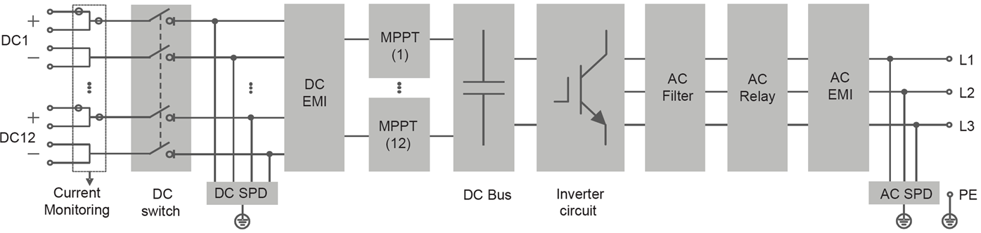 Photovoltaic inverters are divided into household inverters, industrial and commercial inverters, and ground power station inverters according to application scenarios. As the core device of photovoltaic inverter, power semiconductor devices perform the function of electric energy conversion. The bus voltage of household inverter is generally less than 500V, discrete solution is primarily used; The bus voltage of the series inverter is 1100V, and the three-level PIM module solution is dominant. The bus voltage of the inverter of the ground power station is 1500V, which is dominated by the high-current module of the half-bridge, and the three half-bridge modules are combined as a bridge arm of the three-level INPC.
